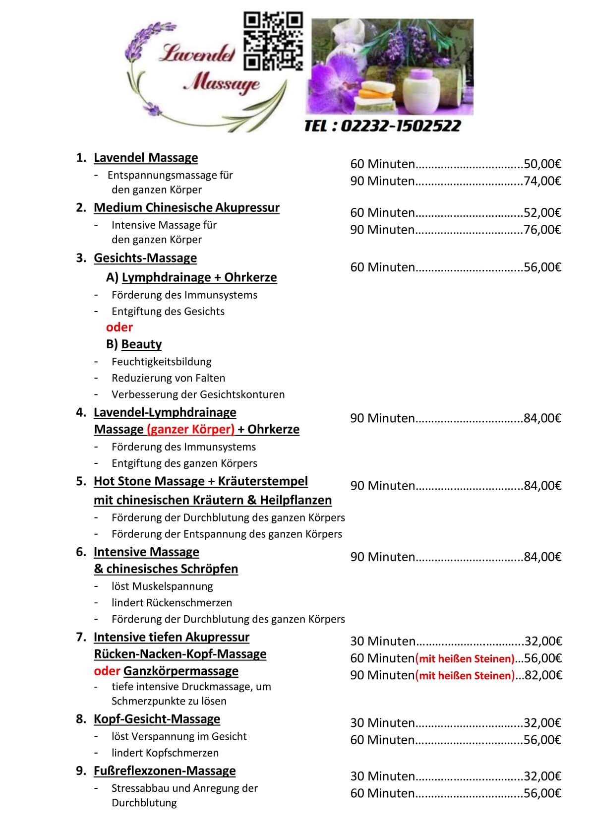 Massageangebot und Preise